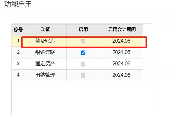 用户降级到普及版后,普及账表没有启用,需要用户勾选功能启用里的普及账表,在勾选时要注意启用期间,默认值是当前月,需要用户手动修改到最开始有凭证的月份,否则之前的期间查不了账表。