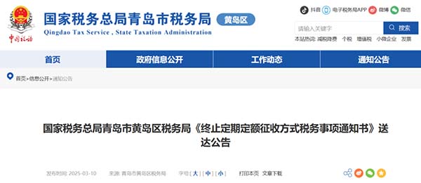 通知内容:自2025年1月1日起终止你户(单位)的定期定额征收方式。终止定期定额后,你户(单位)征收方式转为查账征收。请你户(单位)严格按照有关规定,及时、足额申报缴纳相关税款。