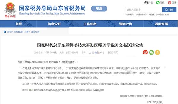 东营开发区畅享食品商行等3138纳税人(名单见附表):