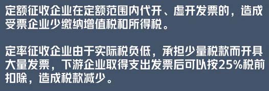 按收入定率征收企业或定额征收企业,由于没有支出发票也不影响所得税的计算,可能不向上游企业索取发票,将导致上游企业藏匿收入,少缴增值税和消费税。