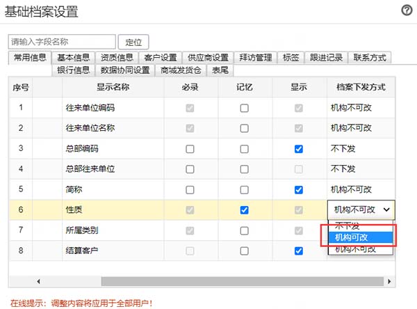 【解决方案】在总部里面进行设置,哪些档案下发机构之后可以修改