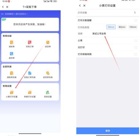【问题描述】:业务员在使用用友畅捷通T+移动端下单时,使用蓝牙小票打印单据时需要将公司主营业务信息打印在表尾要如何设置呢?