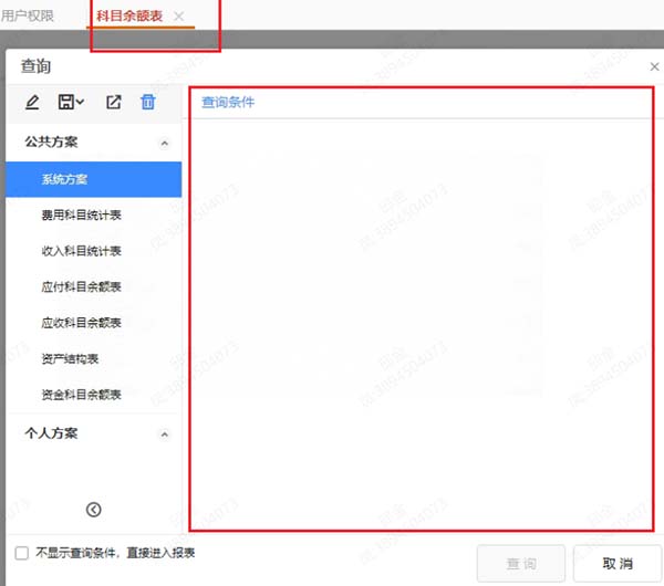 T+Cloud 专属云普及版账套查询科目余额表,无法弹出查询条件