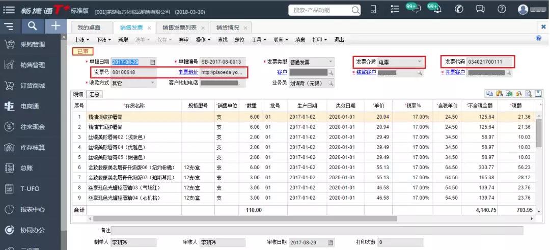 弘方客户的销售对象主要是零售的卖场和渠道批发商,因而大多数开具的是普通发票。之前考虑过把开票软件与T+ Cloud 做对接,但开发费用高昂。考虑到使用的稳定性和后续的更新甚至还有其他费用,不如就用T+ Cloud 现有的“电子发票”平台,数据无缝对接、操作简单方便,给客户解决了一个大难题!
