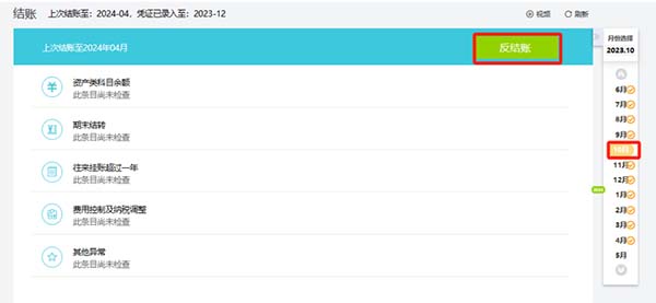 可以做到一键跨月跨年结账和反结账!比如:2024年4月已结账,想反结账2023年10月,直接选2023年10月,点反结账即可。不用按那些复杂的快捷键!