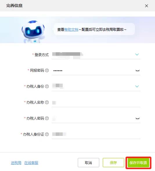 2、完善企业信息,保存并取票