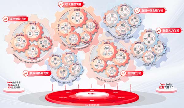 YonSuite的“数智飞轮2.0”是其纯公有云、一体化SaaS的重大成果。该飞轮基于云原生微服务架构,其核心优势在于场景随需组合,支持企业从单一场景切入并不断扩展,环环相扣,形成完整的业务及管理闭环,就像飞速转动的“飞轮”,帮助企业持续积累动能,激发增长,实现从平庸到卓越的跨越。数智飞轮2.0真正从“总裁视角”切入,呈现出6个当前成长型企业老板最关注的业务级场景方案,包含支出管控飞轮、收入管控飞轮、供应链协同飞轮、业财一体合规飞轮、数智人力飞轮和全球化飞轮。这套场景方案模式完全符合SaaS产业不断应用、扩展及订阅、续费的商业模式,树立了SaaS产业新标准。