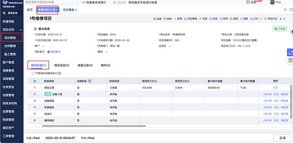 项目全流程管控: 利用【项目合同】模块,从【项目立项】开始,到设置【项目阶段】,再到【支出合同】和【费用支出单】的签订与发生,所有成本支出均与特定研发项目挂钩。