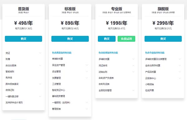普及版:498元/年;标准版:898元/年;专业版:1998元/年;旗舰版:2998元/年。