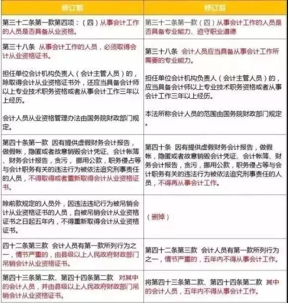 同时加大了对提供虚假财务报告,做假账,隐匿或者故意销毁会计凭证、会计账簿,贪污、挪用公款,职务侵占等违法行为的处罚力度,由之前的不得取得或者重新取得会计从业资格证书直接上升为不得再从事会计工作。