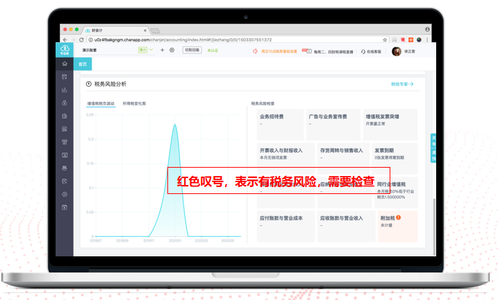 畅捷通好会计可以根据进项销项自动生成同行业增值税税负预警。畅捷通好会计实现了大数据测算分析,帮助企业监测税负指标,不踏雷池,随时了解企业上下游情况,知己知彼,为企业安全防范税务风险!