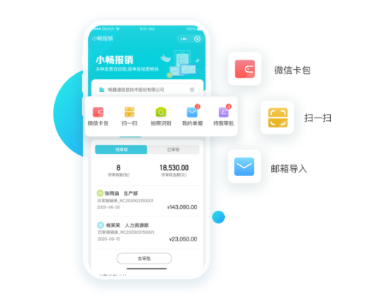 畅捷通好会计支持报销票据一键提取,微信卡包、滴滴、邮箱等平台发票自动拉取,一键生成报销单,还支持火车票、机票、打车票等3600种费用票智能识别。通过好会计可以查验发票真伪、获取发票最新状态,还能防止重复报销,对费用进行有效管控、事前提醒,降低报销风险!