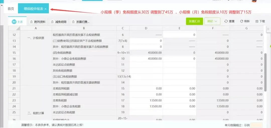 根据小规模免税额度调整政策,畅捷通好会计将增值税小规模免税额度季从30万调整到45万,月从10万调整到15万。使用畅捷通好会计软件,会计朋友们即使没时间关注税务新政策,也能及时做出调整,不交冤枉税,同时也能规避税务风险。