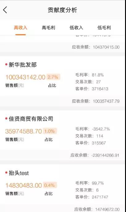 贡献度主要从销售收入、销售毛利2个角度进行分析。了解客户贡献度大小,找出一段时间内贡献度高或低的企业,针对高收入群体、高毛利客户:是商家要非常关注的群体。通过线上线下重点维护这类客户。