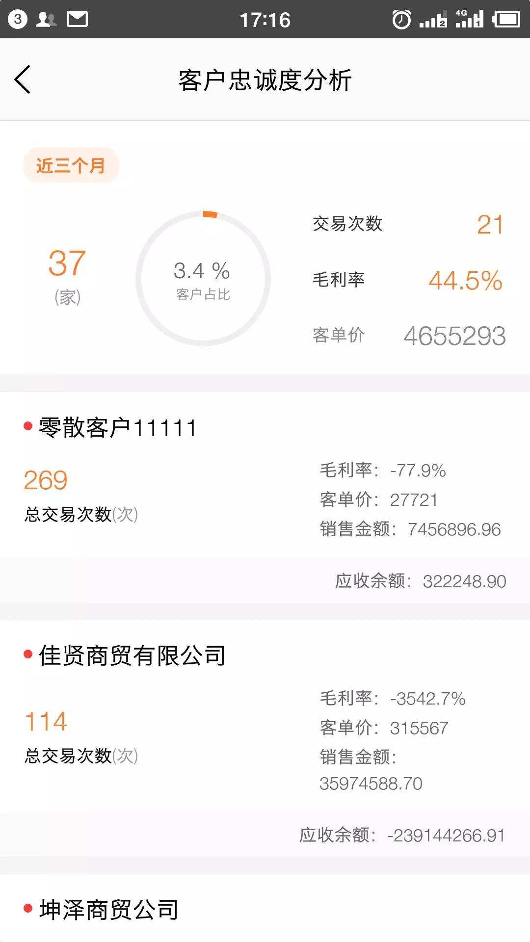 客户数据分析后,针对客户的行为会有相关的提醒:欠款客户超期提醒收款;流失风险、下滑风险客户预警;交易周期异常客户提醒;客户被替代风险预警。
