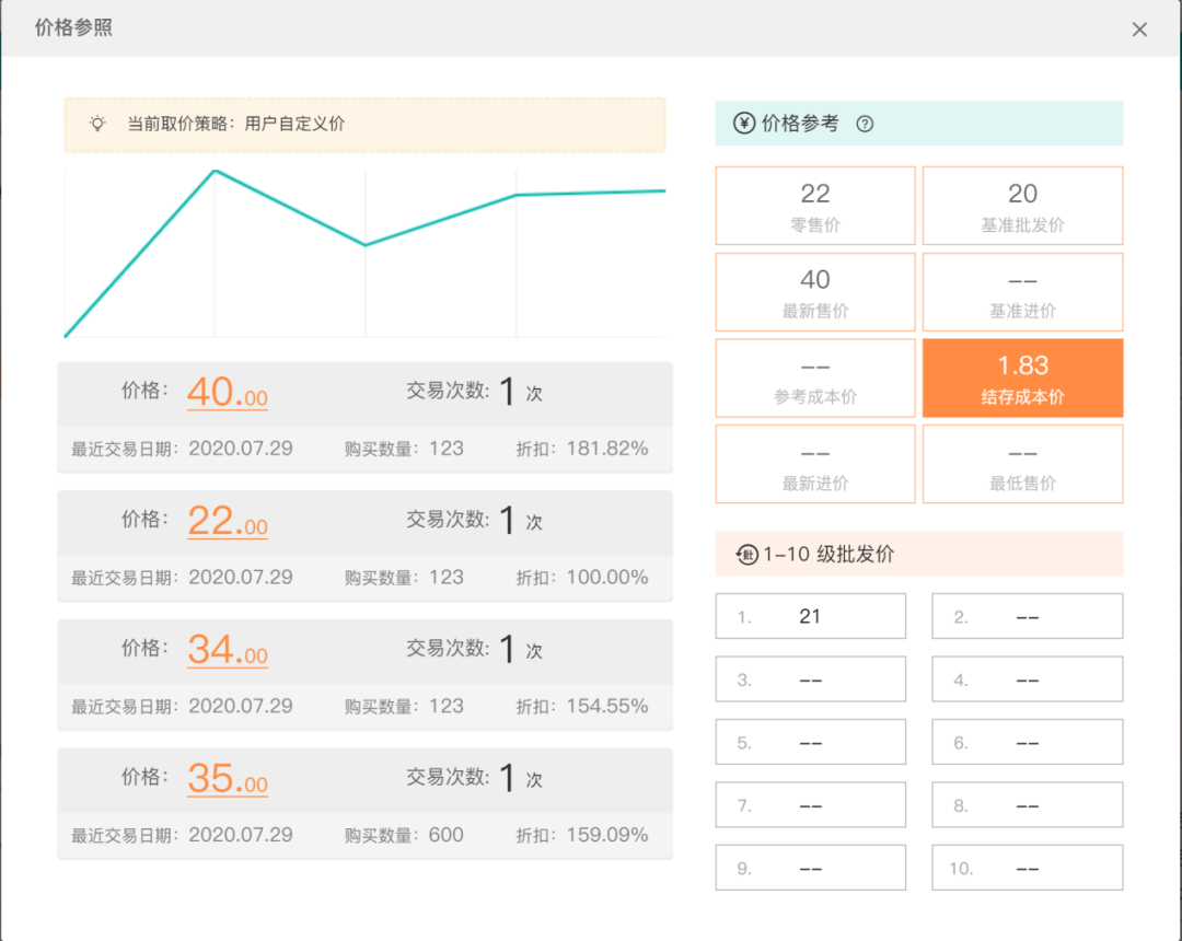 好生意可以严格控制销售价格,历次销售价格都可以进行展示,高于历史销售价格,也会及时进行提醒,还可以设置进行自动干预。