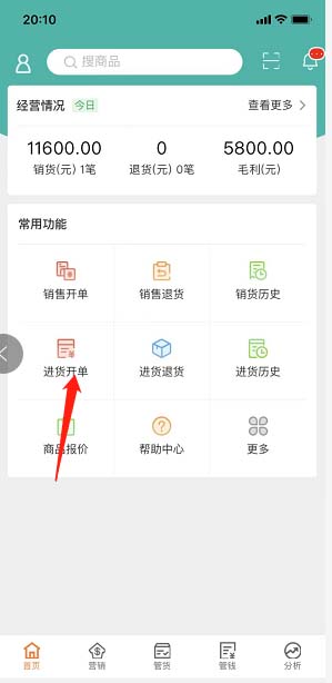 进入手机端后,点击【进货开单】,选择需要的商品。