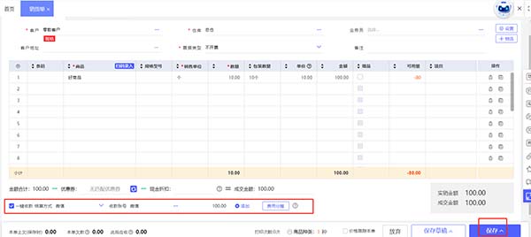 第三步:有收到钱,直接点击一键收款;暂时不收款就直接保存。