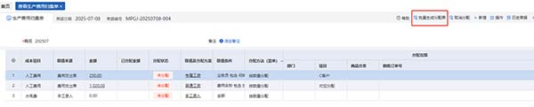 4、点击生成成本中的生产费用归集单-提取当前费用-批量生成费用分配单