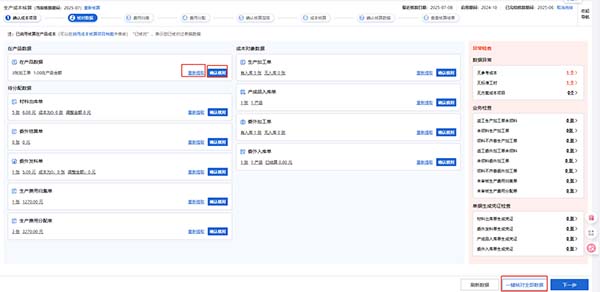F. 回写成本后,第一层计算完成后,计算下一层,点击下一层,点击继续核算,核算完成后,再点击回写成本,在回写成本之前,可以点击直接材料进行修改成需要分摊的数量。如果是一键核算,不支持修改。回写完成后,点击下一步,然后点击核算完成