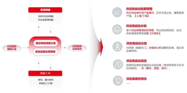 决策式 AI 和生成式 AI 的融合应用为供应商绩效智能化管理提供了有力支持。二者协同运作,一方面可自动采集如质量数据、交付信息、交易记录等多维度数据,以此完成供应商绩效的自动化评价;另一方面,能深入挖掘数据间的潜在关联,实现多维度分析。基于评价与分析结果,不仅能为企业推荐如调整供应商合作策略、优化采购决策、分类分级管理供应商等结果应用建议,还能针对绩效问题自动生成整改计划,有效提升供应链管理水平。