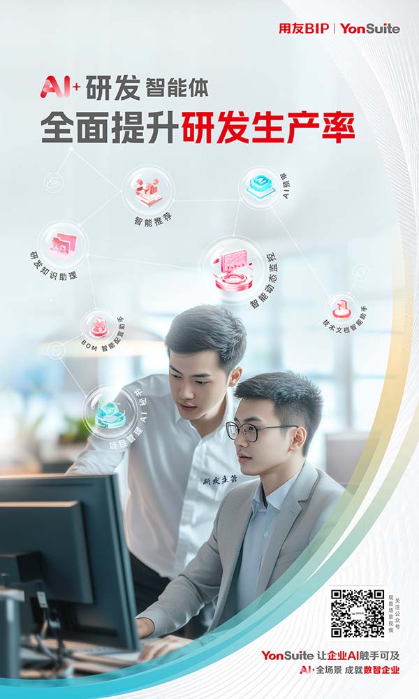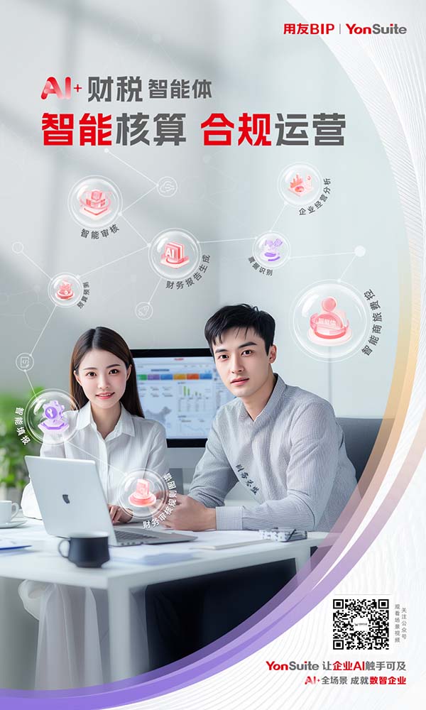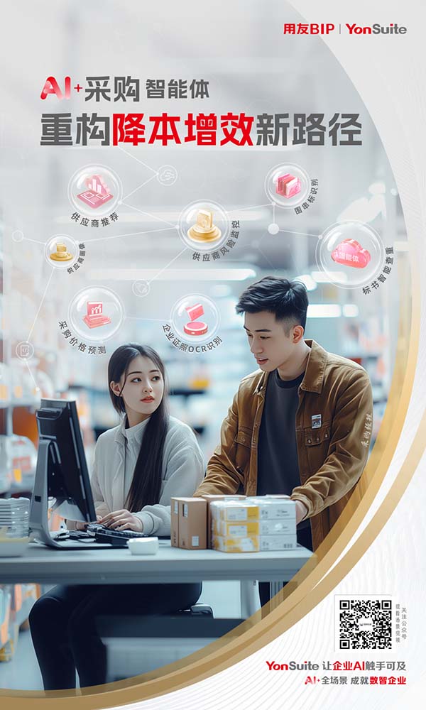 用友YonSuite的AI能力,为每一位管理者提供了强大的支持,让管理更加轻松高效,决策更加科学精准,团队更加团结协作,助力您在企业管理的道路上更加自信从容。