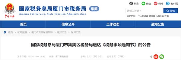 根据《中华人民共和国税收征收管理法实施细则》第一百零六条第(一)项规定,因同一送达事项的受送达人众多,现公告送达《税务事项通知书》。自公告之日起满30日,即视为送达。