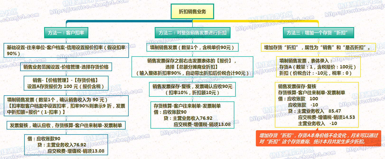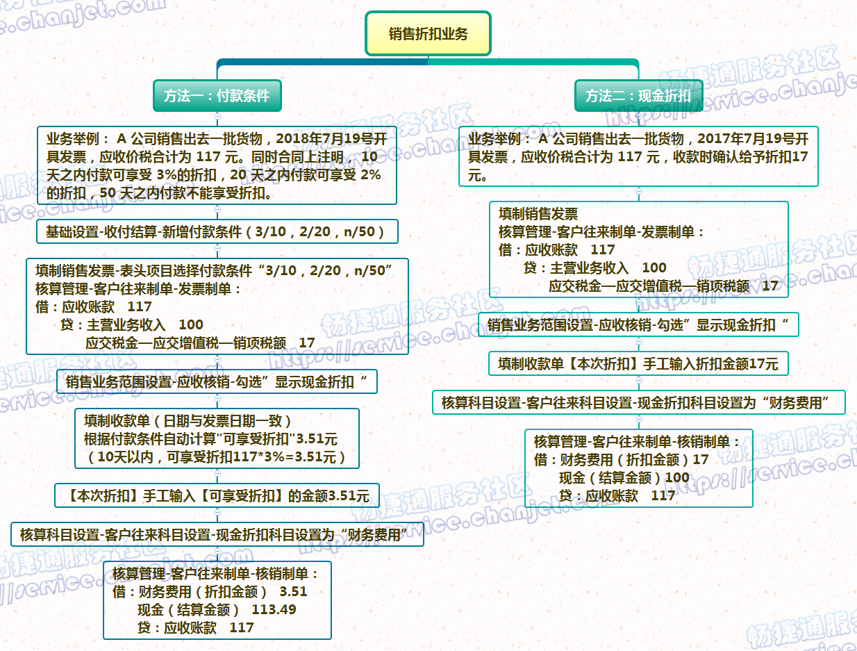 以下两张图解释T3软件如何实现【销售折扣业务】和【折扣销售业务】: