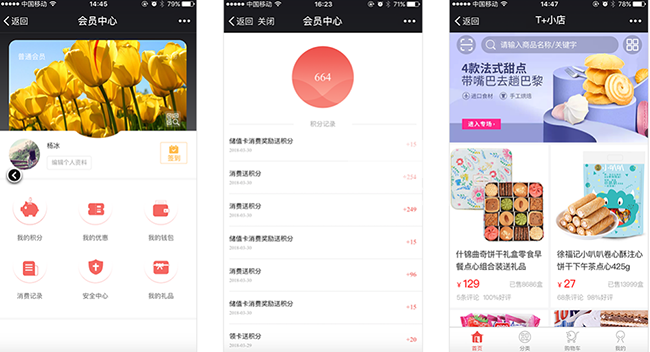 ☛ 储值卡管理:支持会员在移动端查看最新储值余额及自助充值,会员可查询储值余额、消费明细;