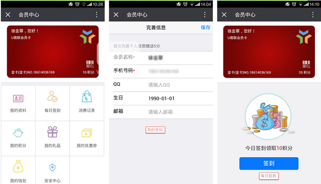 第二式:微会员—微时代会员卡,方便携带,永不挂失;积分查询和兑换,会员自助操作好轻松!