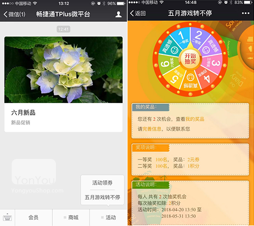 ☛ 定义在线促销活动,丰富的优惠策略组合,会员、粉丝微商城购物享受更多优惠。