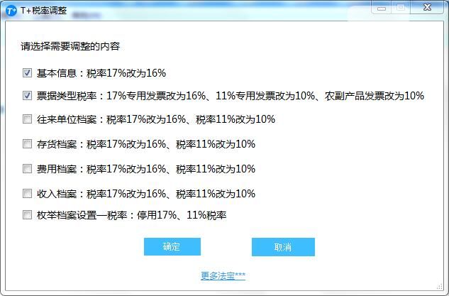 2018年5月1日零点,增值税税率调整正式拉开序幕,T+软件中,除了常见的存货、往来单位税率,还有几处潜藏税率分布各处,极难查找,还不能批量修改!如今,‘T+税率调整工具’法宝将一键调整所有税率,1分钟度过税改调整期。