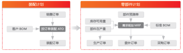 由于零部件的通用性以及按订单装配的紧迫性,所以零部件根据预测进行预投生产,销售接单时将销售订单转换成装配订单及时装配,保证了产销的有效协同,可快速响应客户需求,适应市场的变化,提高客户满意度。