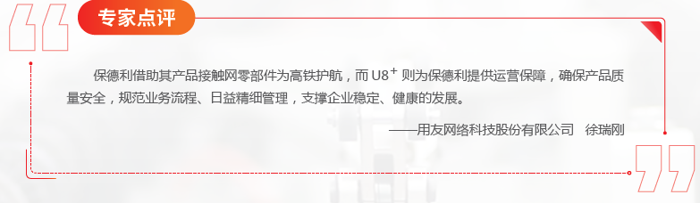 借助U8+信息化管理工具,使我们保德利在资金流、物流、信息流方面有效协同,相辅相成,有效的降低了企业的运营成本,从设计开发、加工制造、产品质量、财务核算、管理效率等方面都有了很大提高,全面的提高了我们企业的综合竞争力。