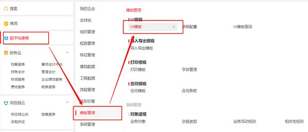 1、进入【数字化建模】-【模版管理】-【UI模版】节点: