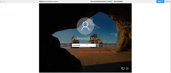 点击了CTRL + ALT + DELETE 命令后,将会弹出密码输入页面,只需要在输入框中正确地输入主机的密码之后按下回车键即可进入远程桌面了。