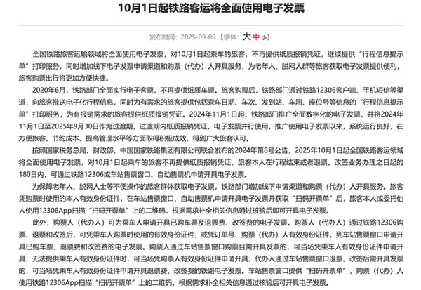 随着国铁集团公告的正式实施,2025 年 10 月 1 日起,全国铁路客运领域将全面停用纸质报销凭证,仅保留电子发票作为唯一报销依据。这一调整对依赖高频差旅的小微企业影响尤为直接,意味着相关企业需在过渡期结束前,完成报销流程的数智化转型。