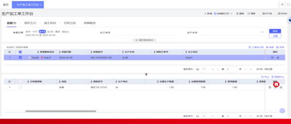 生产工报:支持在生产加工单工作台上查看待加工/加工中/已完工的订单情况。