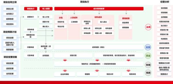 项目看板:每个项目提供自动生成的看板图,围绕收支合同执行情况、应收应付账款、成本归集、利润核算等。支持电脑和手机移动办公,随时随地掌握项目动态。
