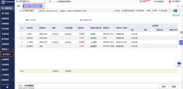 自动化成本计算: 通过【成本核算导航】,系统自动归集与生产订单关联的直接材料成本、委外加工费,并根据预设规则(如按工时、按数量)自动分摊制造费用(水电、人工等),一键生成精准的产成品成本,解决成本“黑箱”问题。
