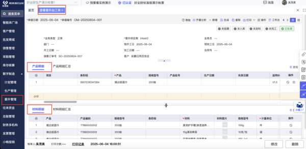 实时进度跟踪:从【委外发料】到【委外入库】,再到【销售出库】,所有单据上下游关联,形成完整的单据历程。管理者可随时在系统内查询任一委外订单的执行状态,实现全过程透明化管理。