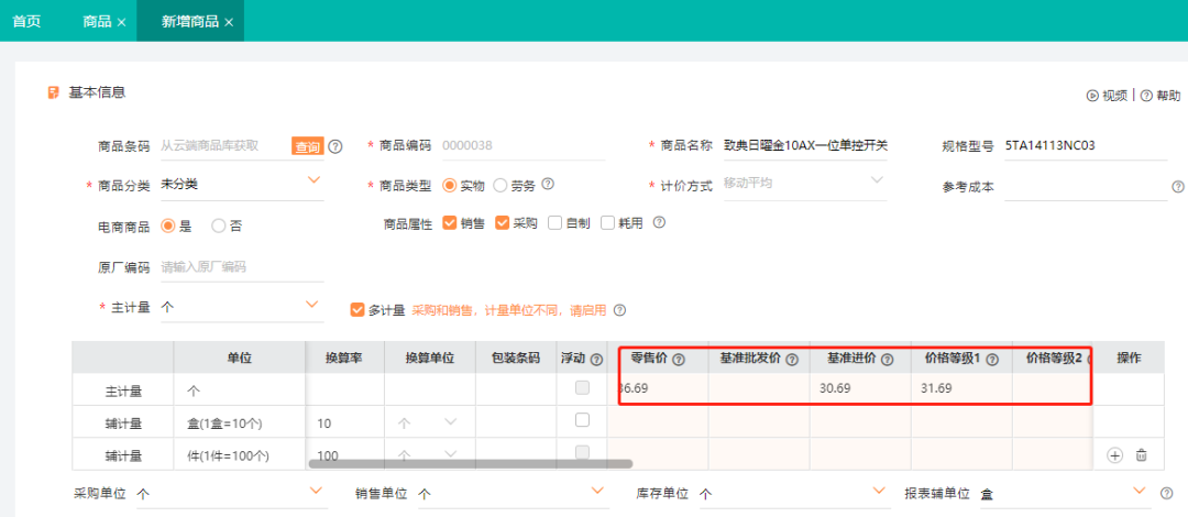 畅捷通好生意的多单位处可录入商品零售价,多级批发价等价格信息,方便开单并遵从售价提取设置自动带出价格。
