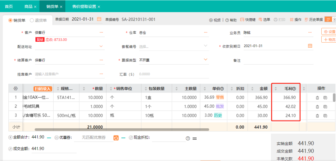 ③通过云端在线销售、开单,实时了解销售毛利并做到精准决策。