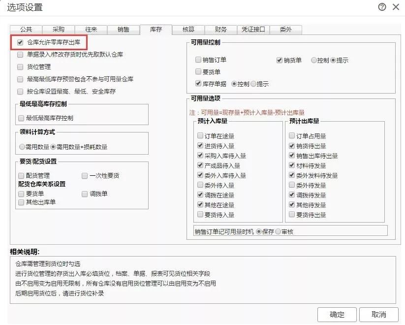 所以如果遇见了无法允许零库存出货的情况,可以先看看是否在“系统管理”—“选项设置”—“库存”页签已经设置了“仓库允许零库存出库”。如果设置无误,则可以进一步按照上述三种情况排查。