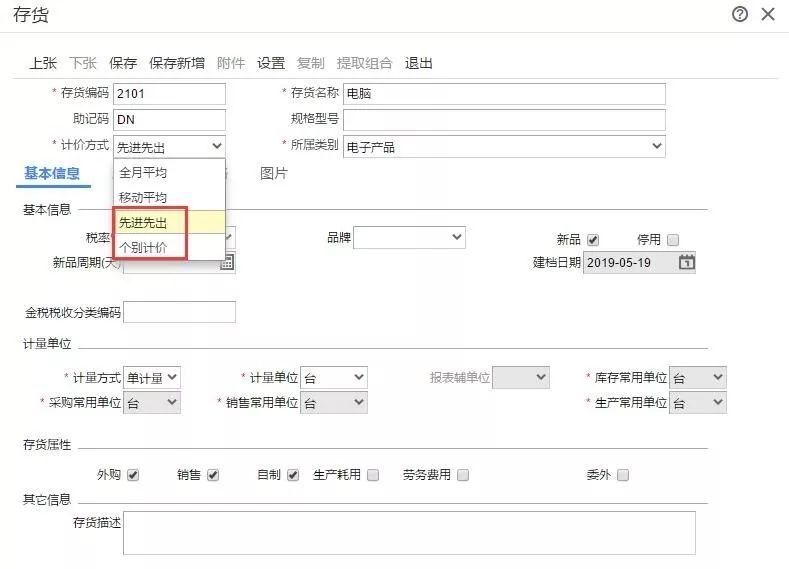 存货的计价方式是“先进先出”或“个别计价”时,即使勾选了“仓库允许零库存出库”也是不起作用的。因为这两种计价方法的存货出库时要有对应的入库才行的,所以这两种计价方法天生是不允许零出库的;如下图所示: