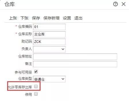 仓库档案未勾选“允许零出库出库”。这样即使选项勾选了“仓库允许零出库出库”,当出库单选择这个仓库时,还是不允许零出库的。如下图所示: