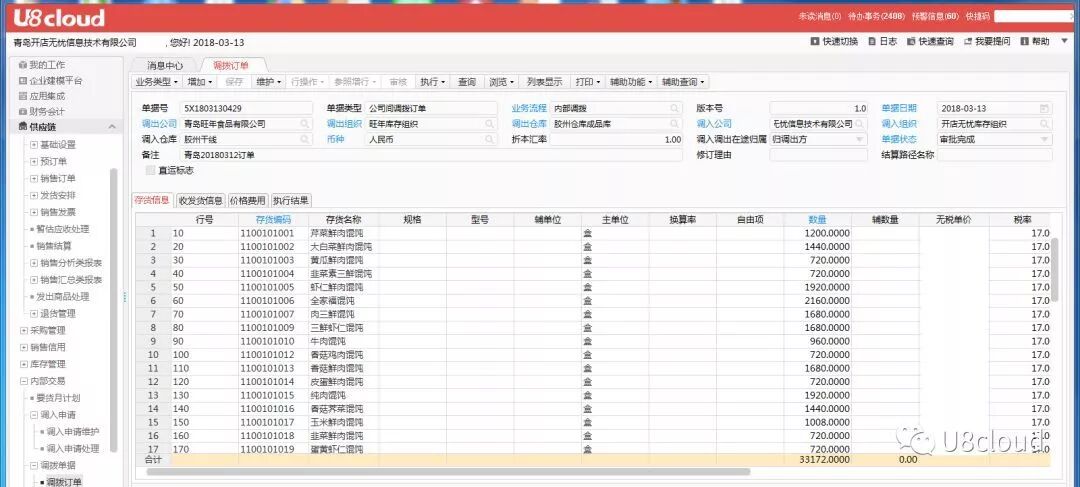 青岛远见集团公司全面应用了U8 cloud的财务、供应链和人力资源系统,此处仅选择两个场景进行说明。