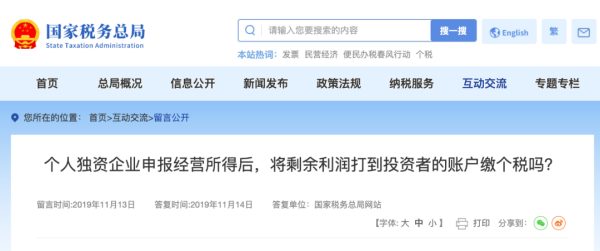 “……个人独资企业和合伙企业按照上述政策申报缴纳经营所得个人所得税后,将利润分配给投资者不再缴纳个人所得税。”
