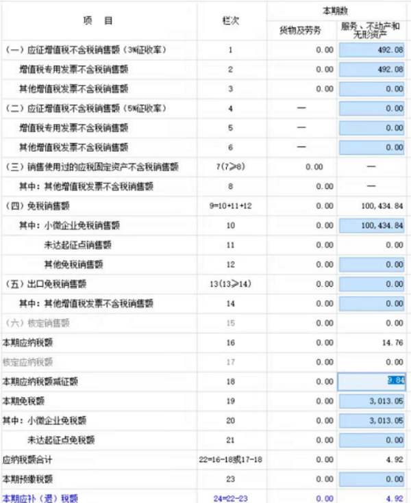 按理说没有任何问题。但是提交申报的时候,减免税明细表始终无法通过比对。系统提示是,减免税明细表本期发生额小于开票的不含税金额的2%。