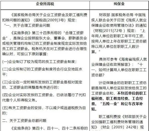 (2)退休返聘:企业因返聘离退休人员所实际发生的费用,应区分为工资薪金支出和职工福利费支出。其中属于工资薪金支出的,准予计入企业工资薪金总额的基数,作为计算其他各项相关费用扣除的依据。而返聘离退休人员无法和企业签订劳动合同,则不应纳入残保金的工资总额基数。